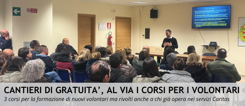 - Caritas e volontariato, al via i corsi di formazioneCantieri di Gratuità: tre corsi di formazione al volontariato rivolti sia a chi vuole avvicinarsi per la prima volta al mondo Caritas e sia a chi già opera nei suoi servizi.Source: caritas – La Porzione | Published: 25 Settembre 2025 - 10:33
