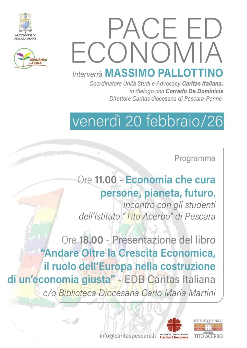 - Ore 11:00 – Incontro con gli studenti dell’Istituto Tecnico “Tito Acerbo” di Pescara dal titolo “Economia che cura persone, pianeta, futuro”